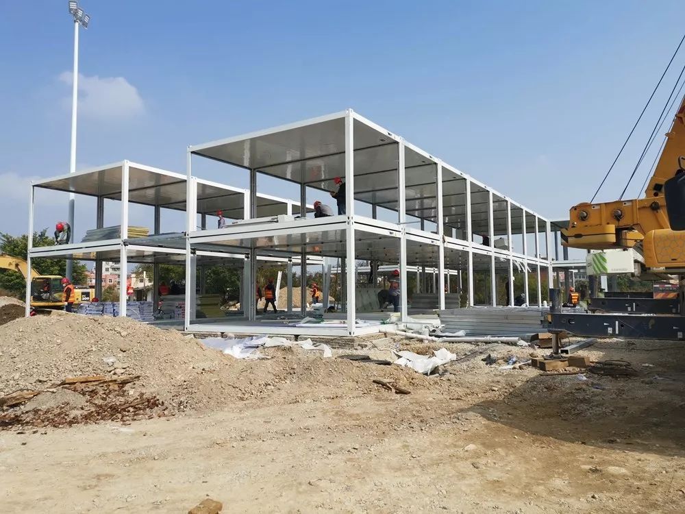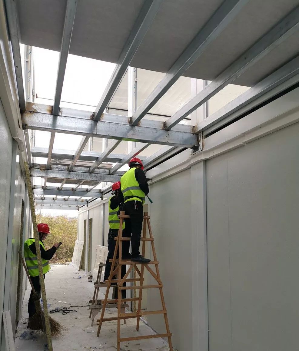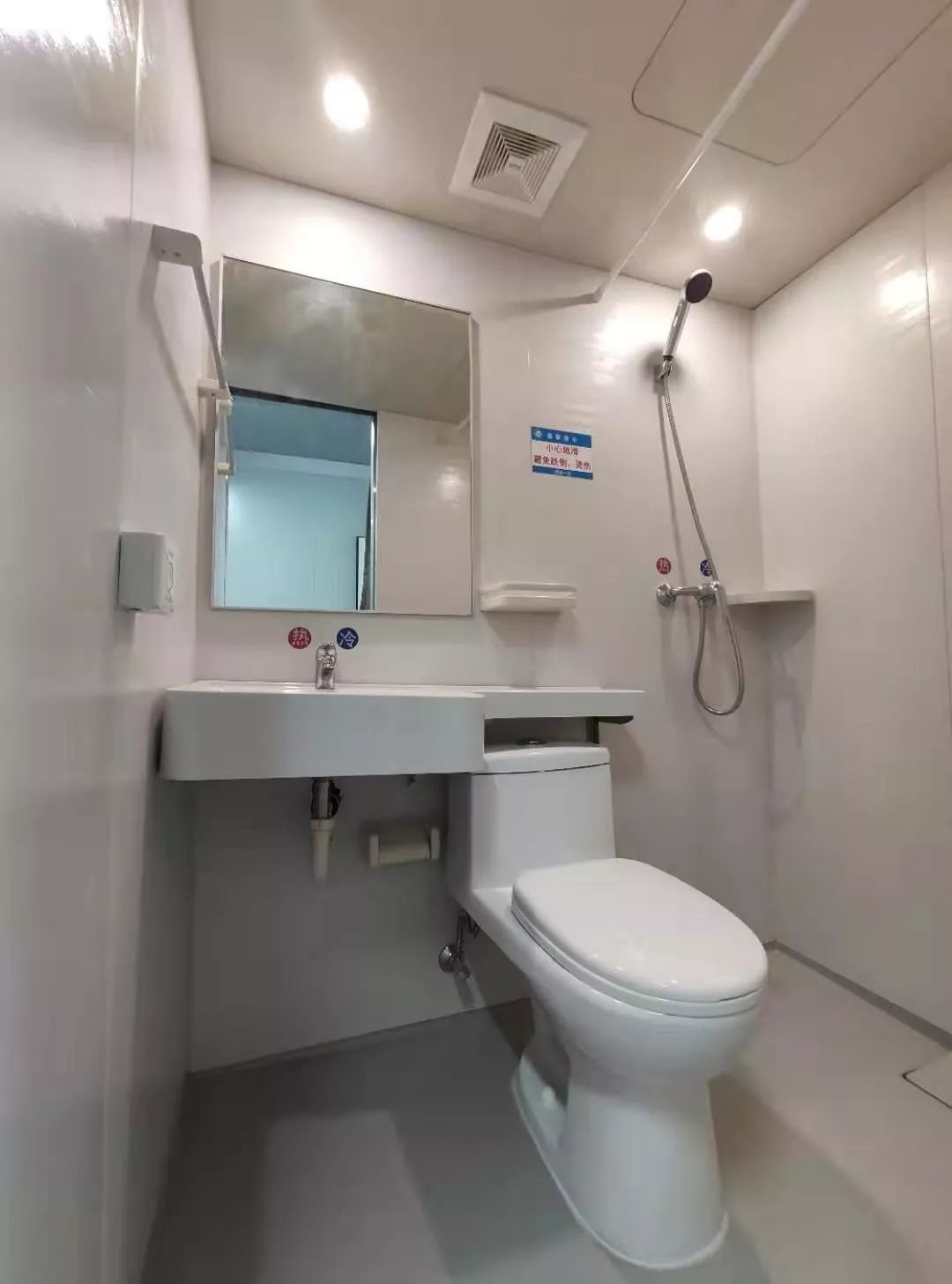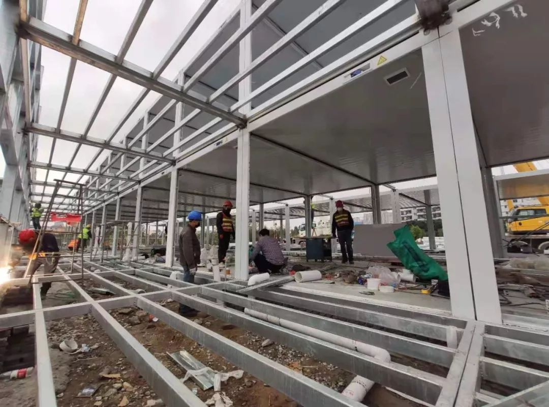 虽然采用装配式模块化建设的优点很多,但目前国内以装配式模块化建筑方式做标准感染隔离病区的经验却相对缺乏,且隔离病区对建筑本身的各项要求标准均高于其他普通建筑。又恰逢这个时间紧张,人员紧缺的特殊时期,因此,想要保质保速地完成任务并不是一件容易的事,金强控股的项目团队需要克服的重重困难还有很多….但俗话说,“办法总比困难多”,金强控股集团迎难而上,直面问题想方设法解决问题:施工人员因疫情原因难以召回就聘请当地的工人;材料紧缺就调动公司甚至员工个人的所有人脉,找到可以提供材料的厂商“蹲点抢货”。派人直接开着货车到江苏某材料生产商“蹲点”,以高价抢购建设隔离病区所需的集成卫浴和医疗专用门等建材。因在特殊时期,人机材的搭配异常困难,价格爆涨且需现金结算,资金压力大。获悉以上困难后,福建海峡银行总行、滨海新城支行给予了全力支持与关心,火速进行项目信贷资金增援。在特殊时期开辟绿色直通通道,从对接到放款,仅仅用时3天。就此,金强控股集团缓解资金压力,更好地投入到项目建设中去。此次项目工期异常紧张,为抢抓时间,在设计图尚未全部完成时,凭借平面图先行施工,在前期土地平整时,挖掘机、推土机、压路机同时作业,数百名建设者在现场忙碌。项目充分发挥装配式建筑的优势,在现场准备前期工作和设计深化时,工厂同时预制产品并运输至现场。在房屋安装时,各工序交叉施工,设备和各单元模块一旦满足进场条件,第一时间跟进安装。