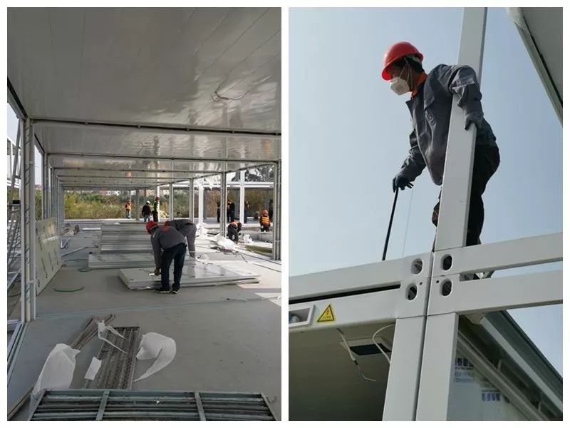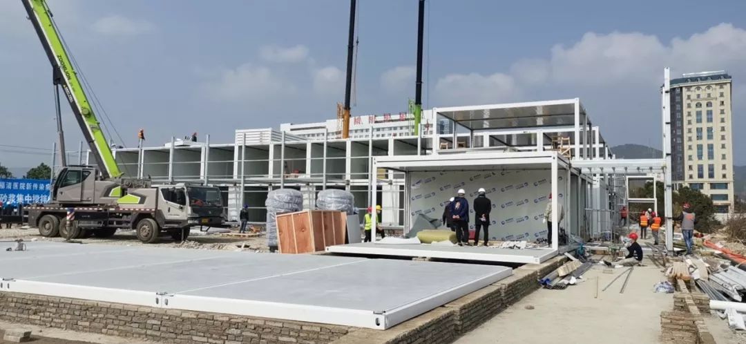 截止上次1月31日金强控股公众号发布福清市医院新感染病区的报道时,项目已经完成了模块化房屋骨架安装,2月2日,模块化房屋安装基本完成。