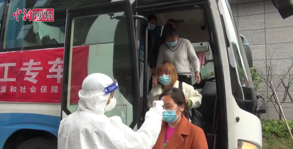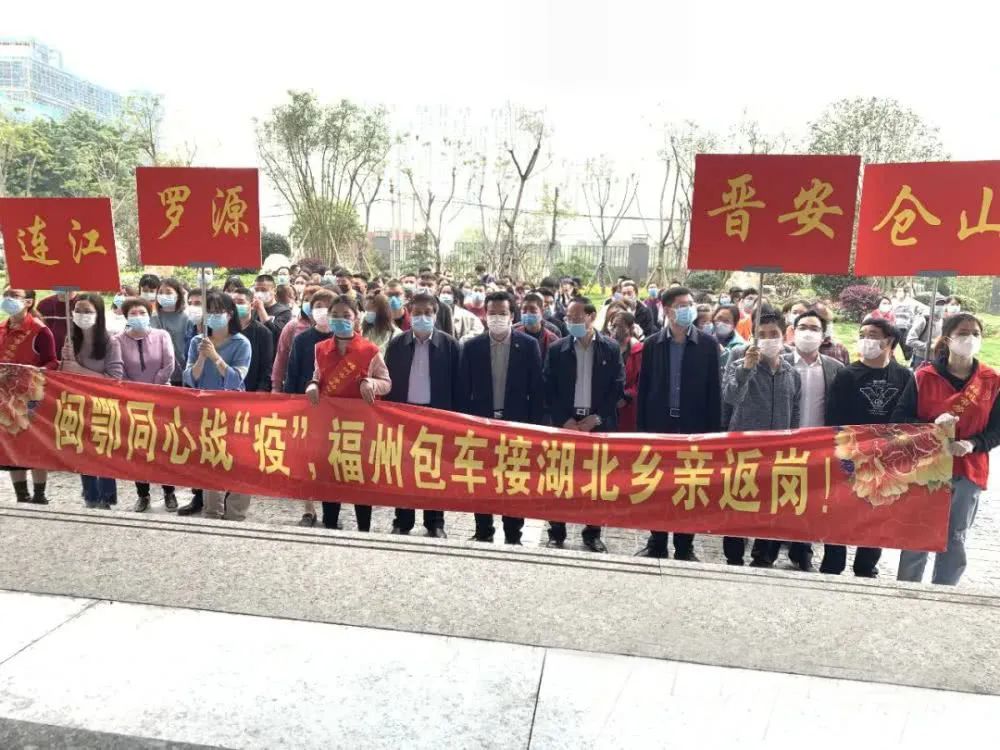 3月26日上午,由福州市“返岗爱心专车”接回的首批209名湖北籍返岗员工抵达榕城,其中金强装配建筑产业园的湖北籍返岗员工20名。