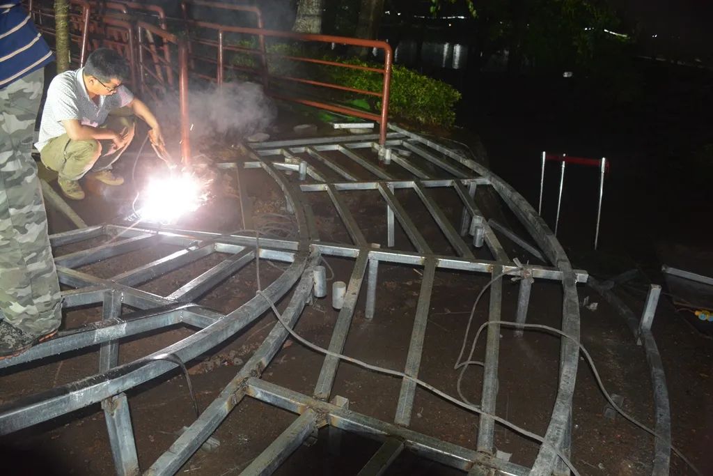 ▲5月28日 拆除原栈道,铺设钢龙骨