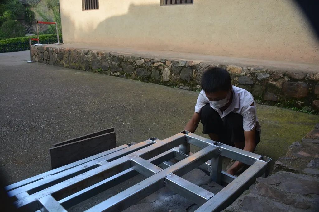 ▲5月30日 故居入口台阶处安装钢龙骨