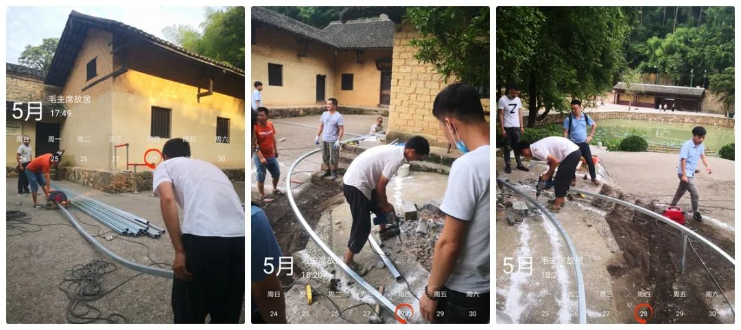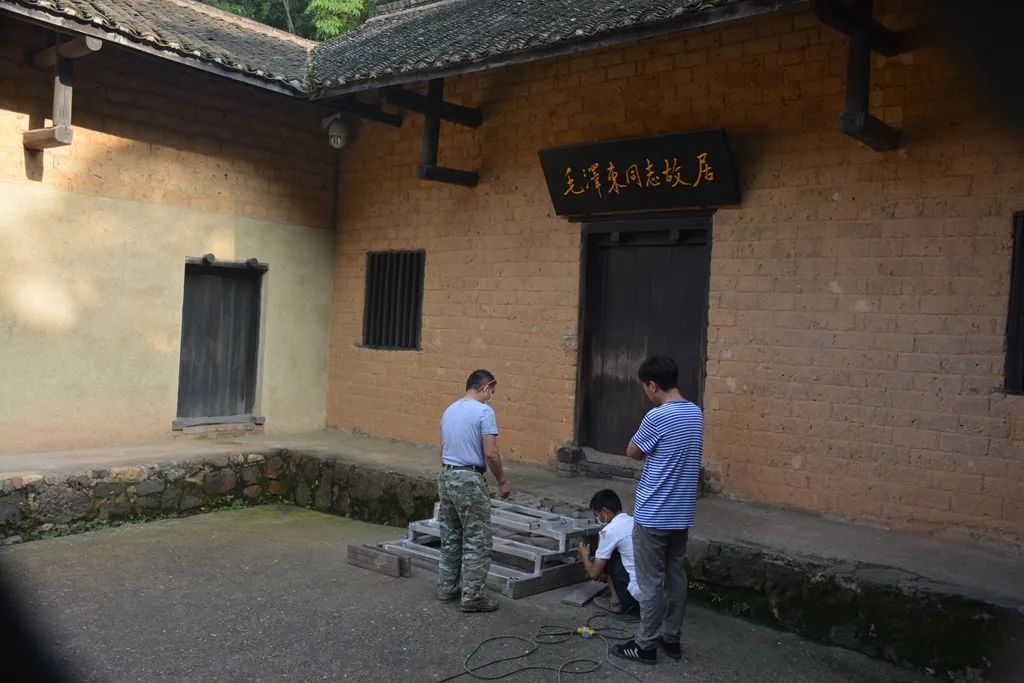 此次修缮工作时间紧,施工单位为金强在湖南的战略合作伙伴——海沃建筑工程技术(湖南)有限公司,5月27日进行现场勘测,5月28日晚正式施工,5月30日晚施工完成。项目全程为夜间作业,白天故居正常对游客开放。