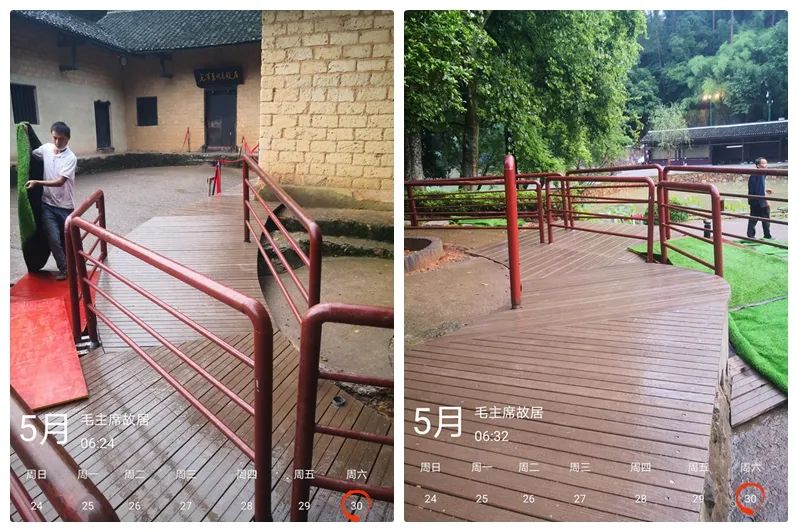 经过连续几天的夜间施工,项目顺利完工,金强TKK栈道板成功替换原先破旧的板材,让毛泽东故居纪念馆入口处栈道焕然一新。同时,金强TKK栈道板拥有木纹肌理,其古朴自然的风格与周边环境及故居浑然一体,彰显历史人文底蕴。5月31日,入口排队处恢复正常使用,迎来了新的一波又一波的游客。