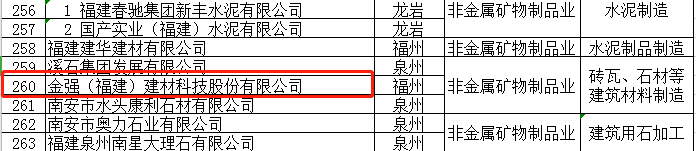 省工信厅发布2020年福建省工业和信息化省级龙头企业名单 金强建材荣登榜单