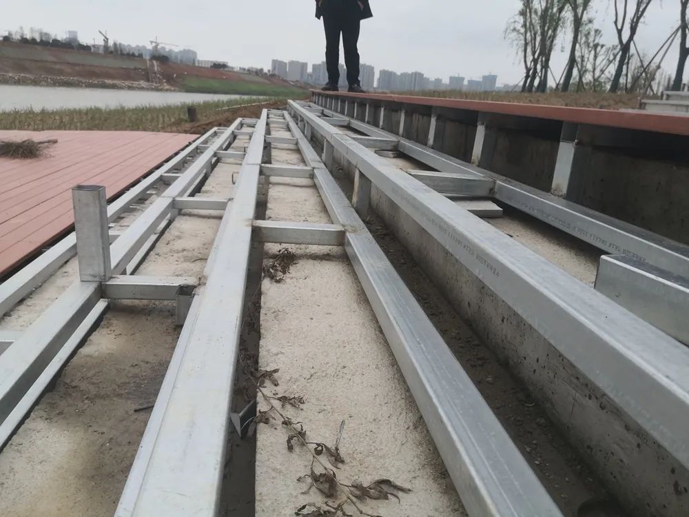 ▲金强TKK栈道板可直接安装于钢龙骨上
