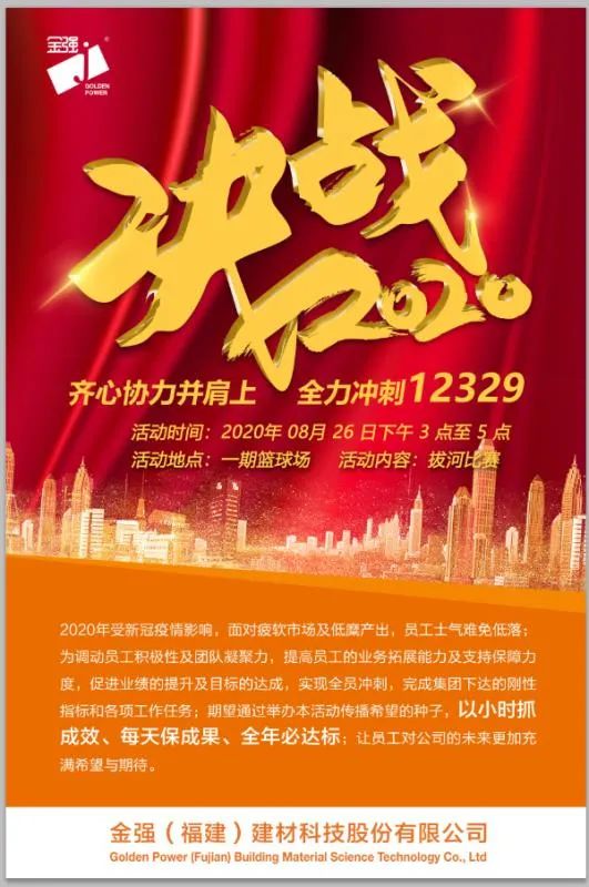 拔河比赛是对金强建材员工素质、精神风貌的一次检阅,是对各部门团队拼搏精神的一次考验,通过拔河比赛,激发团队战斗力,增强团队凝聚力,为金强建材冲刺2020企业经营目标,为高质量的经济发展保驾护航。