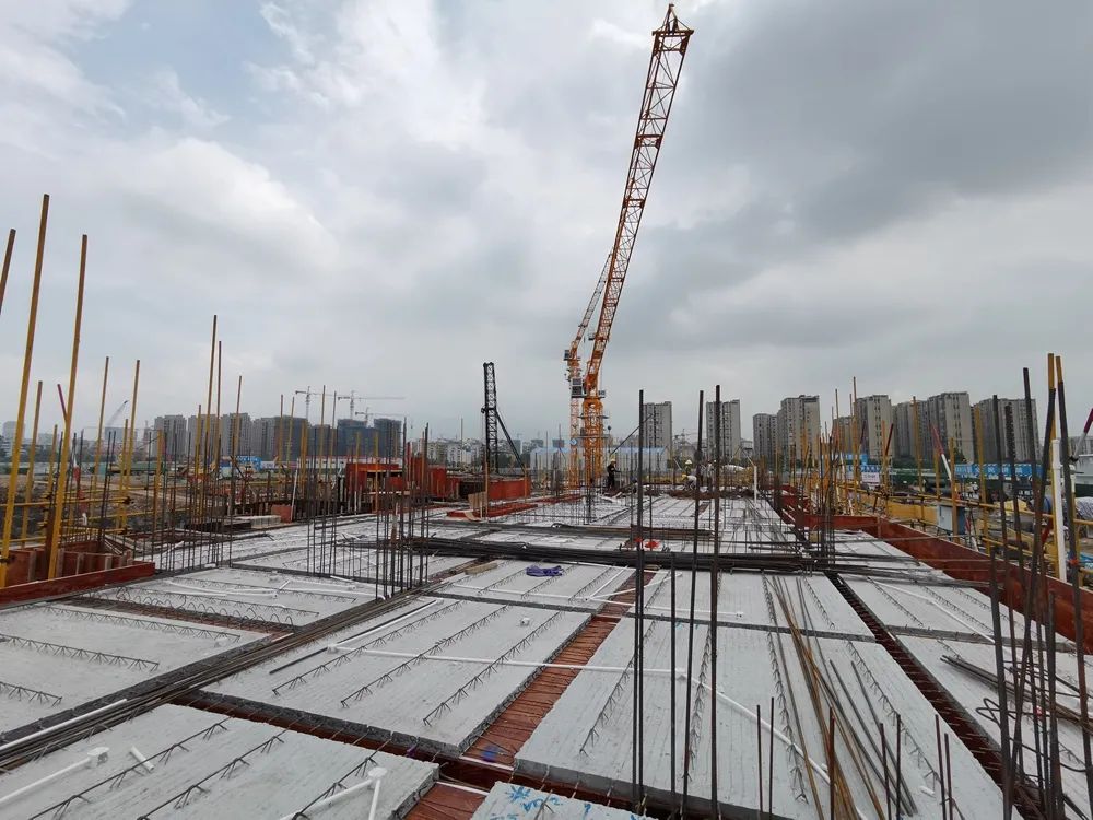 金强叠合板:是由预制板和钢筋混凝土层叠合而成的装配整体式楼板,采用工厂流水作业,尺寸精确,整体性好,下表面光滑平整,便于饰面装修。楼底板表现质量达到清水效果,可以减少工地模板使用量,具有节能环保、降噪、节省劳动力,更好地保障工期节点等特点。