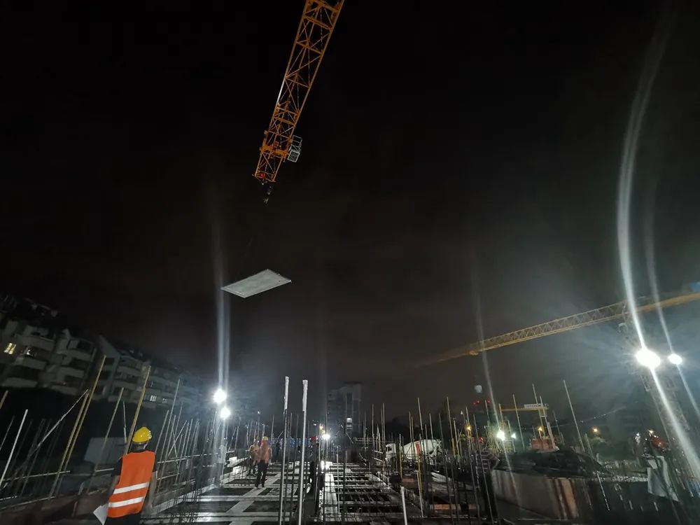 ▲1#2层首次吊装,使用金强叠合板