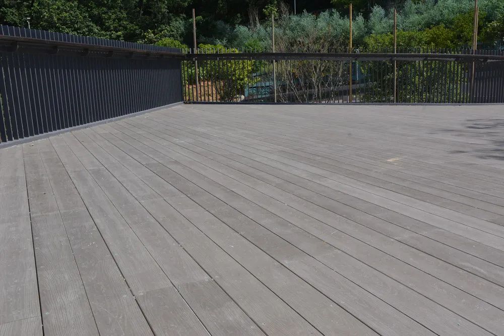 金强TKK栈道板以高品质硅酸盐无机胶凝材料、精细石英粉、全进口植物长纤维等原材料,通过现代化生产工艺制胚,精细木纹印刻,高温高压养护而成形,具有防火、防水、防霉、耐候、防蚁、耐久等特点。在人流量较大的公园使用,相较于传统防腐木更加耐磨,可以减少因人、物、日晒、风等各种因素而产生的磨损,使用寿命长久。