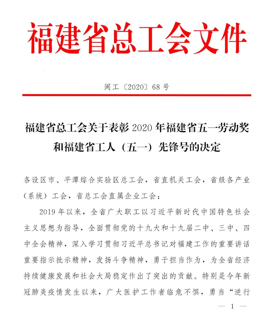 受新冠肺炎疫情影响,福建省五一劳动奖表彰会推迟到10月19日举行,表彰会采用了“云表彰”的方式来赞美和致敬劳动者。