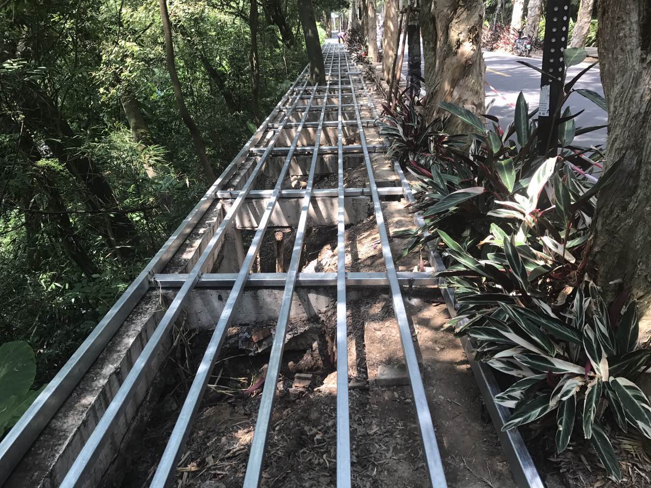 ▲栈道前期铺设龙骨阶段