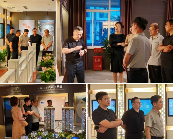 随后,考察团前往金强人居产业园,参观金强人文建筑展厅和生产线,深入了解金强在绿色建筑的技术优势与创新成果。