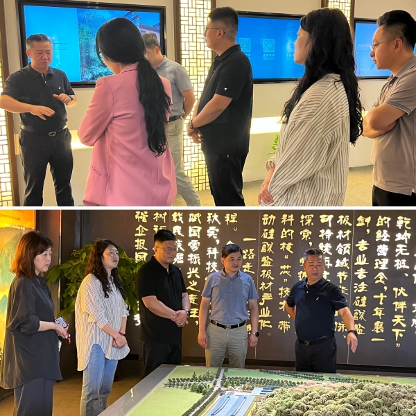 考察组一行参观金强人文建筑展厅,认真听取金强的发展概况、历程布局与产业规划介绍,并通过现场讲解和实物展示,系统考察了金强在绿色建筑领域的创新成果和实际应用案例。