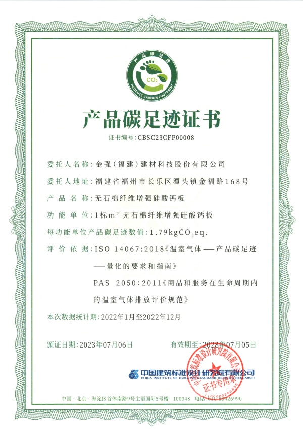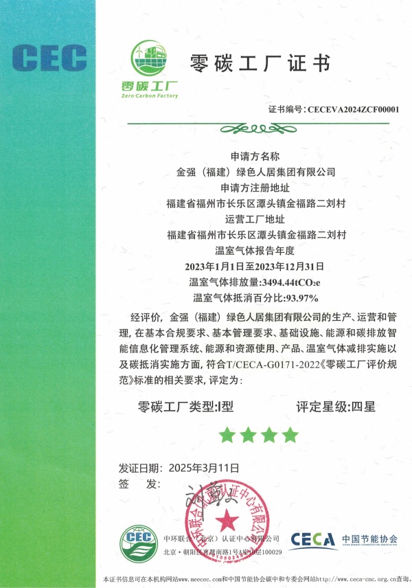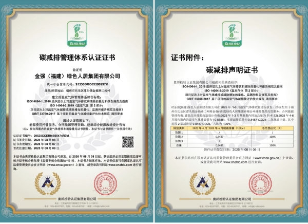 此前,金强人居集团已先后获得四星级零碳工厂认证,多款产品荣获"产品碳足迹"证书(CFP)和"Ⅲ型环境声明"证书(EPD),充分展现集团在绿色低碳领域的成就。