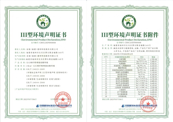▲ 图为金强产品通过Ⅲ型环境声明证书