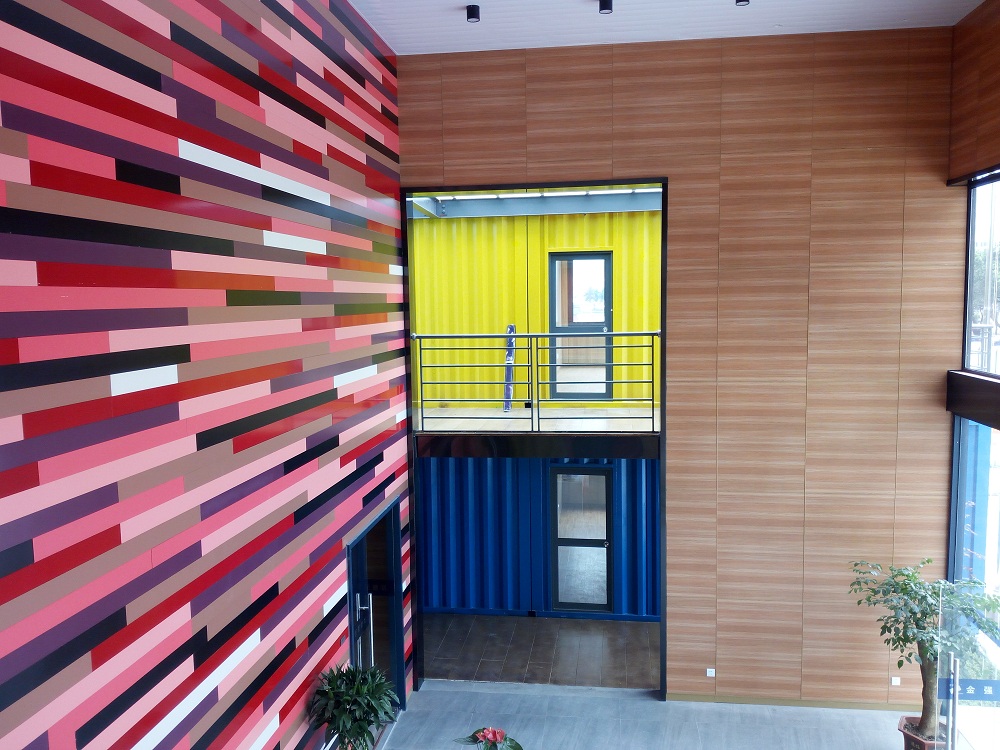 福兴经济开发区C1地块采用了钢结构集装箱的方式建造。集装箱内墙使用了金强ETT艺天涂板以及TKK特可靠板等绿色板材。